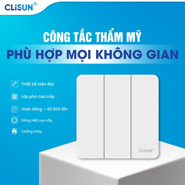 Công tắc CLISUN được thiết kế tinh tế, vận hành mượt mà, giúp tối ưu trải nghiệm bật/tắt đèn, đảm bảo độ bền và an toàn trong suốt quá trình sử dụng.