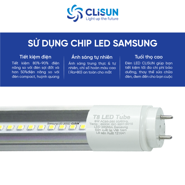 Đèn LED T8 CLISUN cho độ sáng cao hơn so với đèn huỳnh quang cùng công suất, mang lại ánh sáng đều, không nhấp nháy, giúp bảo vệ thị lực người dùng trong thời gian dài.